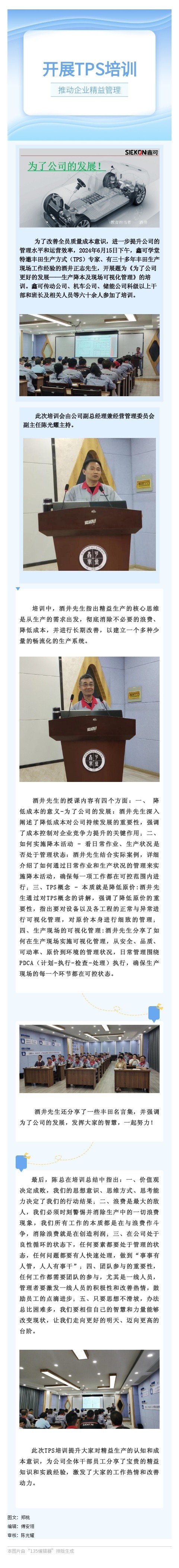 開展TPS培訓 推動企業精益管理 2024-06-20 16:48:56 浙江鑫可傳動科技有限公司 瀏覽次數 1447 上一條擔當重任|引領制造業高質量發展新未來暨董事長於文勇“兩新”工作推進大會發言 下一條感恩客戶 鑫可在行動