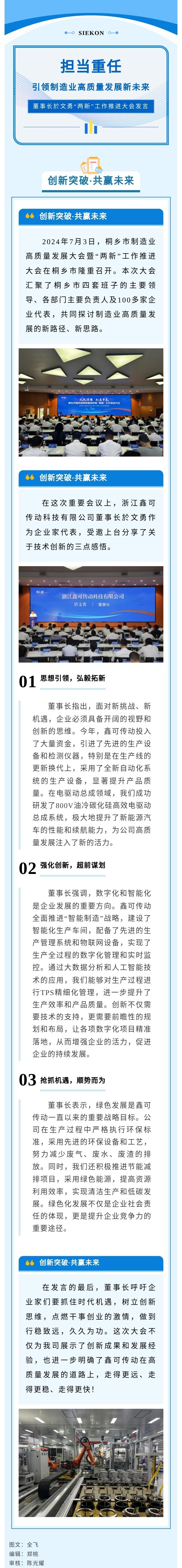 擔(dān)當(dāng)重任|引領(lǐng)制造業(yè)高質(zhì)量發(fā)展新未來(lái)暨董事長(zhǎng)於文勇“兩新”工作推進(jìn)大會(huì)發(fā)言 2024-07-11 16:05:13 浙江鑫可傳動(dòng)科技有限公司 瀏覽次數(shù) 1232 上一條嘉興市委書(shū)記陳偉深入鑫可調(diào)研,共話企業(yè)發(fā)展新篇章 下一條開(kāi)展TPS培訓(xùn) 推動(dòng)企業(yè)精益管理